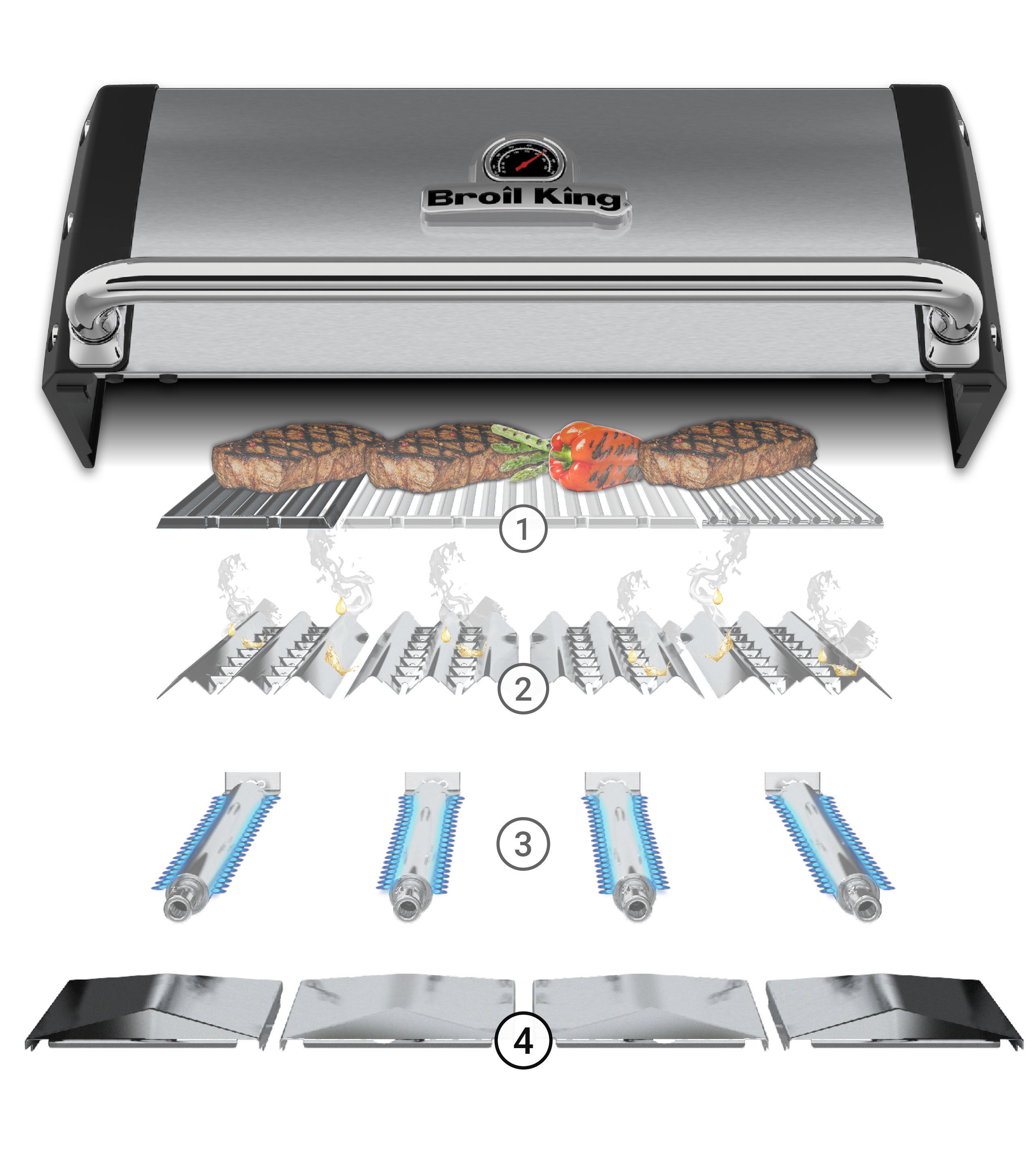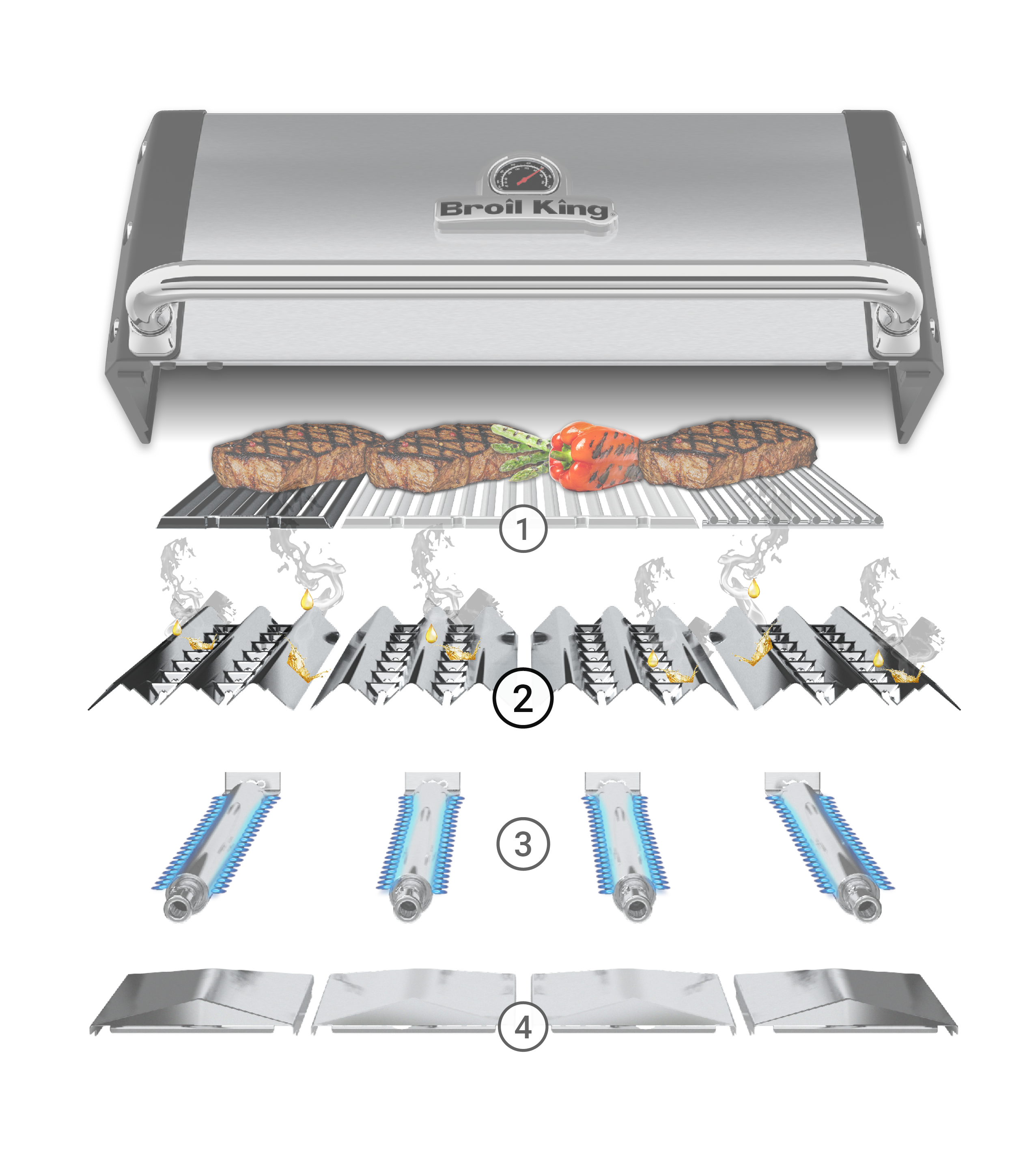 Made from durable stainless steel, the Flav-R-Waves protect the burners and evenly distribute infra-red and convective heat to vapourize juices and maximize flavour.