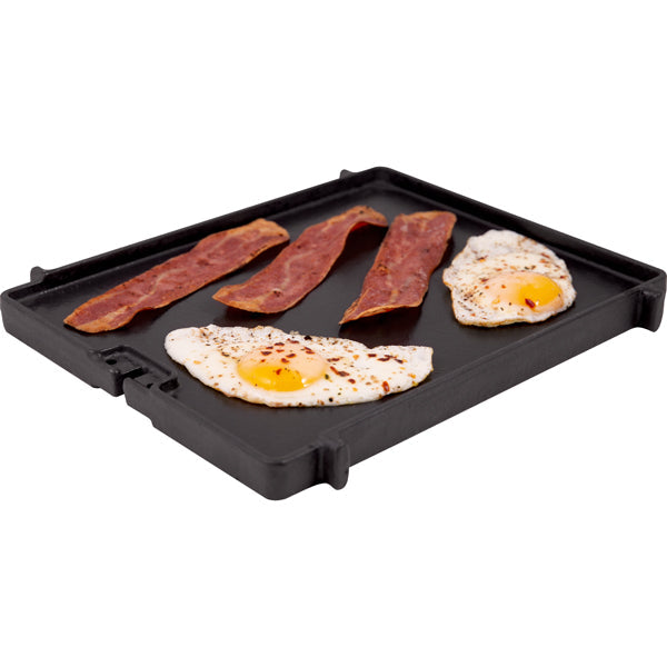 - Plaque de cuisson réversible en fonte avec revêtement en porcelaine mate.