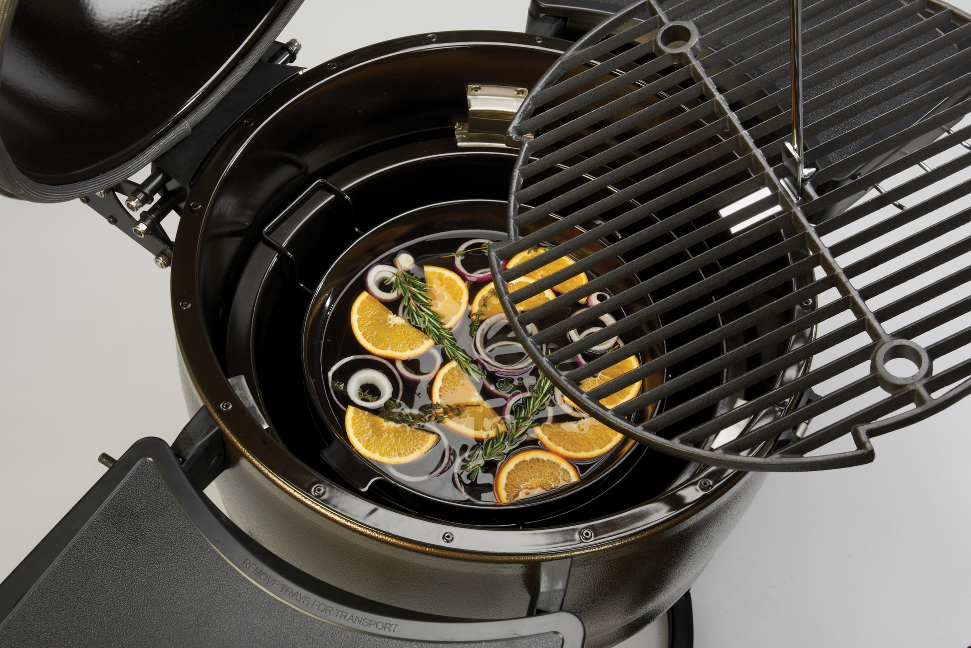 Fournit une douce chaleur indirecte pour une cuisson uniforme, lente et à basse température. Également pratique pour ajouter des copeaux de bois et des liquides dans plusieurs méthodes de cuisson. On l’inverse pour surélever la surface de cuisson principale, pour une chaleur plus douce. Fabriquée en acier enduit de porcelaine résistante.