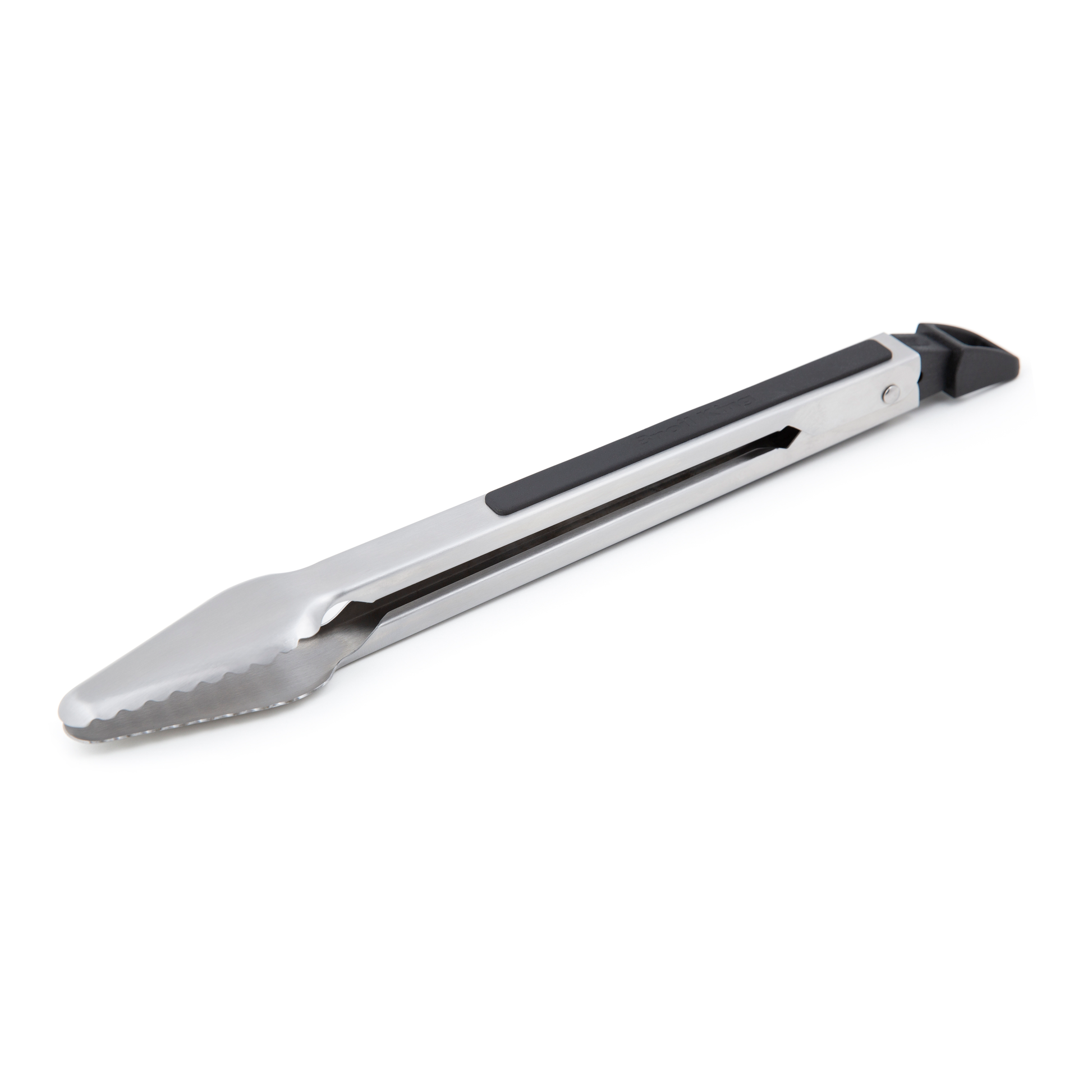 Lift and grip food with precision with the Broil King Baron soft gripped precision tong. These tongs are engineered with double scalloped ends providing the user with the ability to pick up smaller sized foods on the grill with ease. Additionally, these shorter length tongs are great for smaller foods where precision grilling is required. Other features include stainless steel construction, and a locking mechanism that doubles as a hanging hook. 12-IN long.