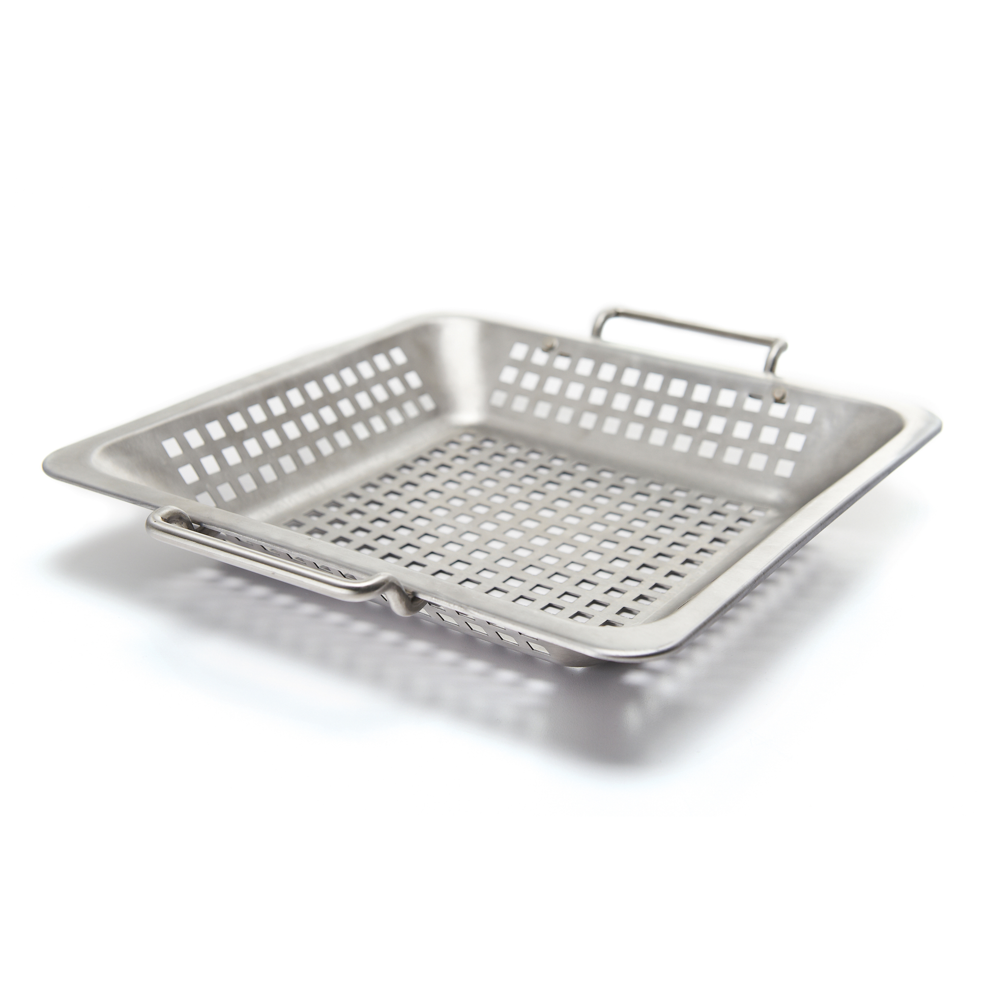 Perforated stainless steel grilling wok with stainless handles. The single draw design improves functionality and rigidity, it also makes it much easier to clean. 12 in. x 12 in. x 2 in. cooking surface